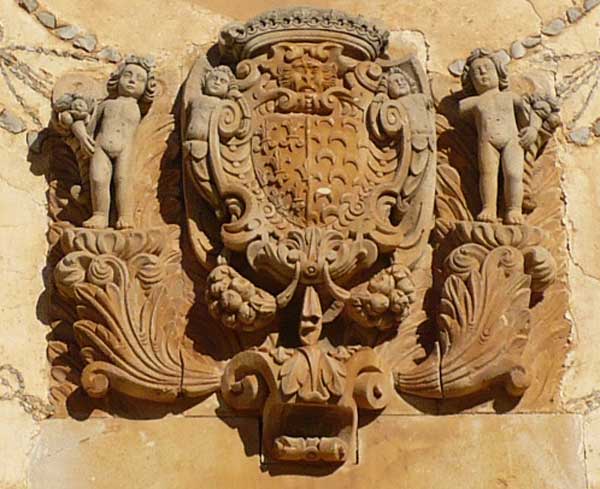 gusto barroco, flanquean el escudo de armas de