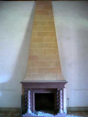 | Una chimenea flanqueada por dos columnas salomónicas,