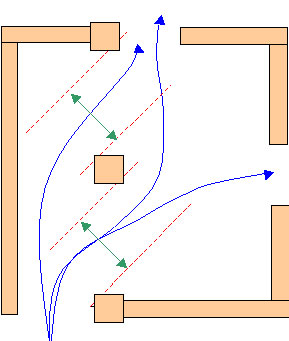 un flujo de paso en forma de "s". |