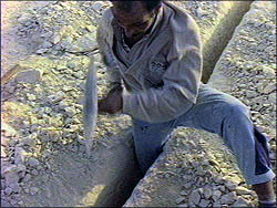 trabajan los bloques con cinceles y mazas prácticamente