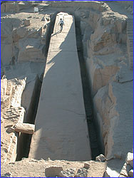 El obelisco inacabado en su lecho de cantera. Obsérvese el tamaño