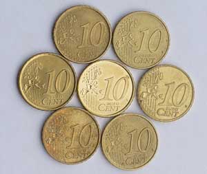 Si tomamos una moneda de 10 céntimos con