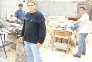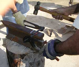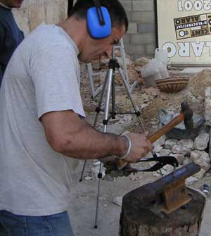 | Gonzalo forjando su primera gubía. La mano
