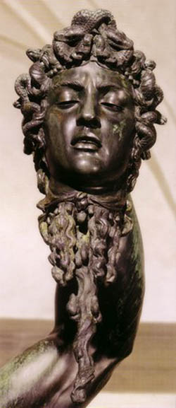 a la gorgona Medusa como prueba de su valor. La mirada